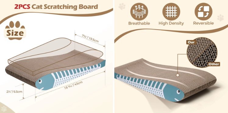 Usage: Cat scratching board are essential for cats to maintain claw health, exercise, release energy, regulate behavior, and mark territory.