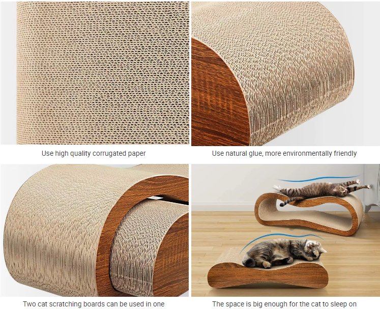 Usage: Cat scratching board are essential for cats to maintain claw health, exercise, release energy, regulate behavior, and mark territory.