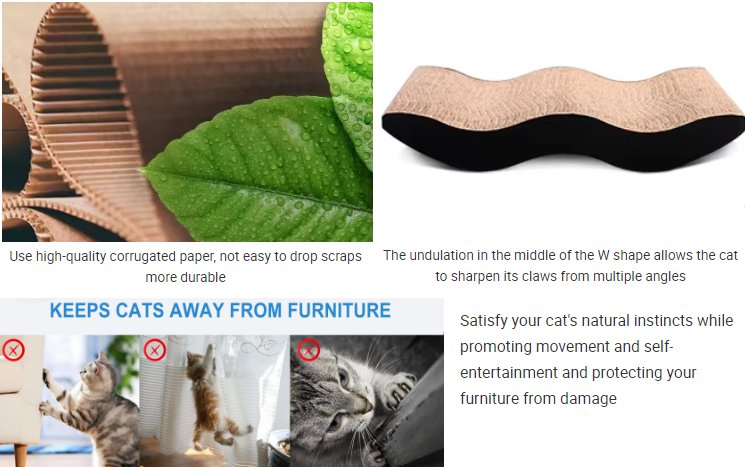 Usage: Cat scratching board are essential for cats to maintain claw health, exercise, release energy, regulate behavior, and mark territory.